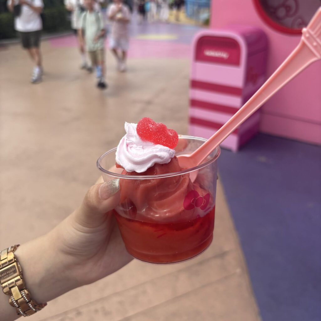 可愛らしいキティちゃんモチーフのフローズンアイス。