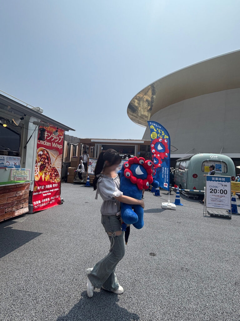 とにかくこのサイズのミャクミャクを持っていると、道ゆく人に声をかけられます笑