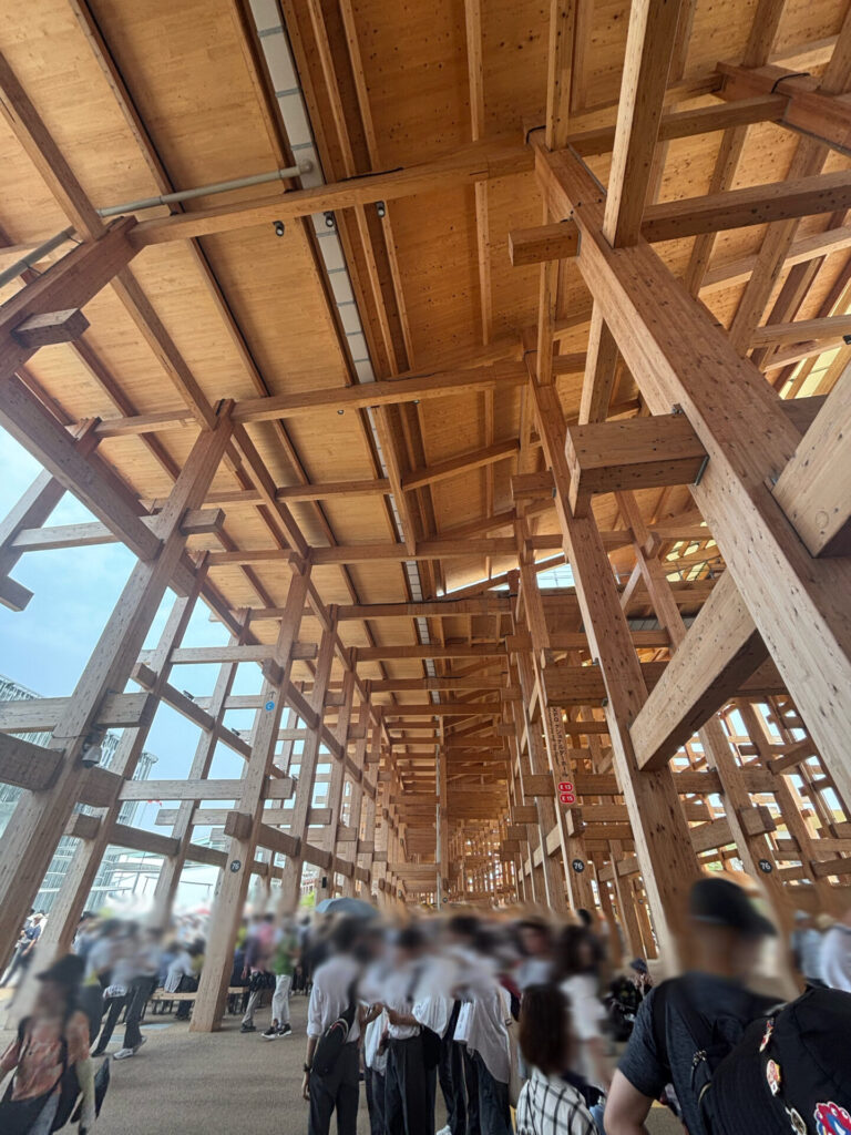 大屋根リングの下から始まりかなり長い列ができていて、1時間以上は並んだと思います。