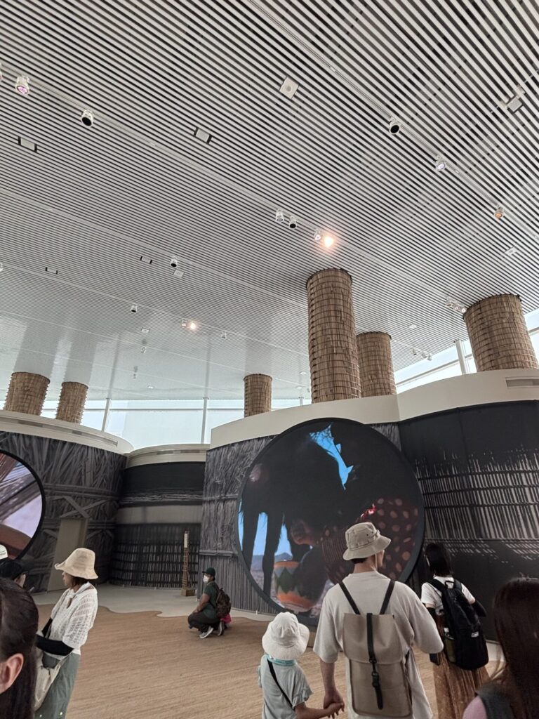 中の展示も自然を感じる涼しげな印象で、ナツメヤシからできた柱が特徴的です。