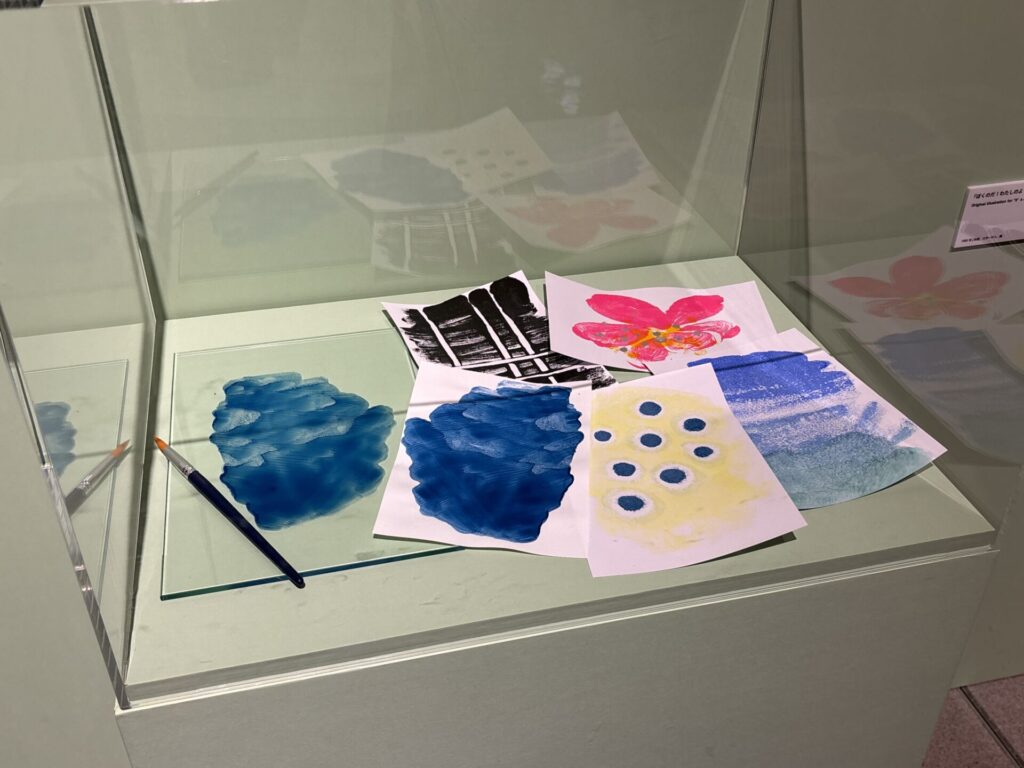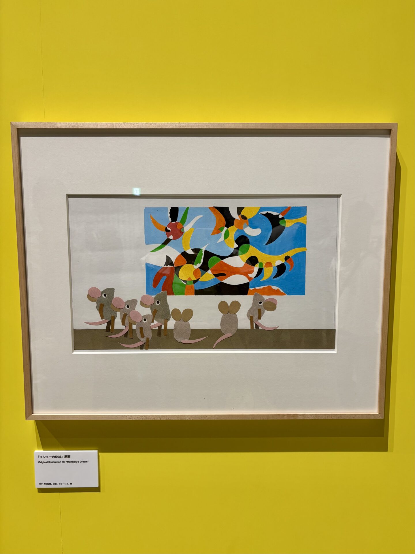 レオーニは、コラージュやフロッタージュ、モノタイプ、スタンピングの技法を取り入れ、絵本づくりをしていました。はじめて聞く言葉もありましたが、とても分かりやすい展示になっていました!
