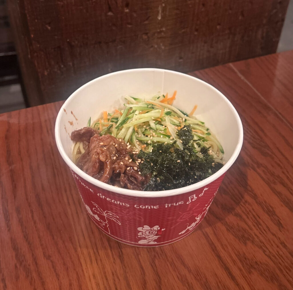 最後にご紹介するのは「牛カルビと韓国のりの冷やし麺(塩レモン)」です!!お肉と海苔がとても美味しくて最後まで全く飽きずに食べれました!暑いこの季節の中で食べる冷やし麺は本当に最高です!この冷やし麺はタワテラの近くのドッグサイドダイナーで食べることができます!!