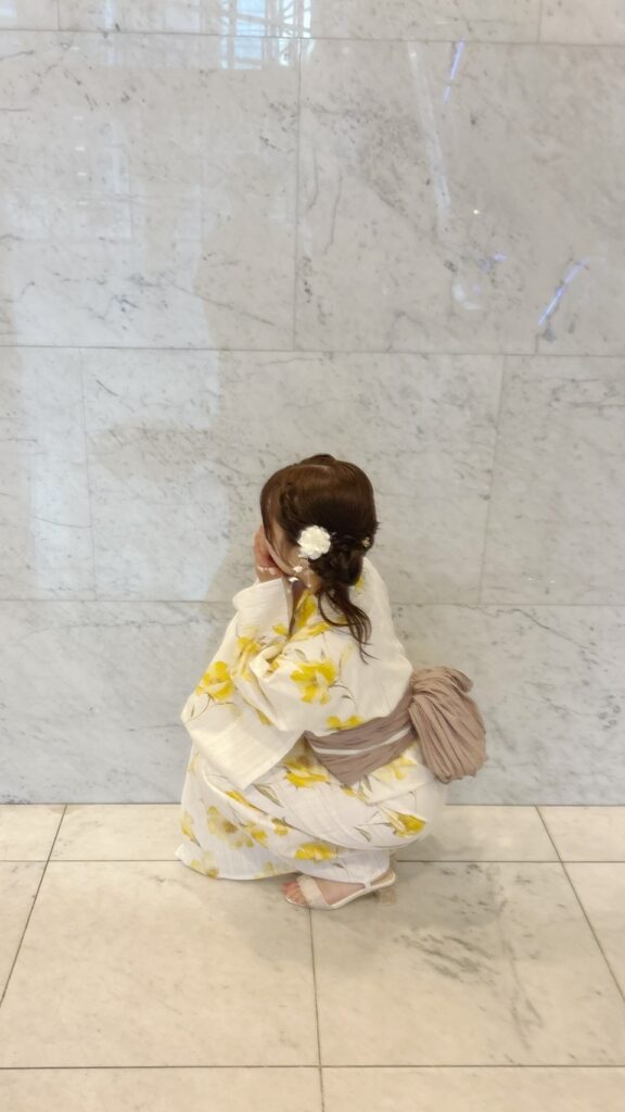 浴衣の着付けは、ヘアメイクとともに会場近くの美容室にお願いしました✍🏻
