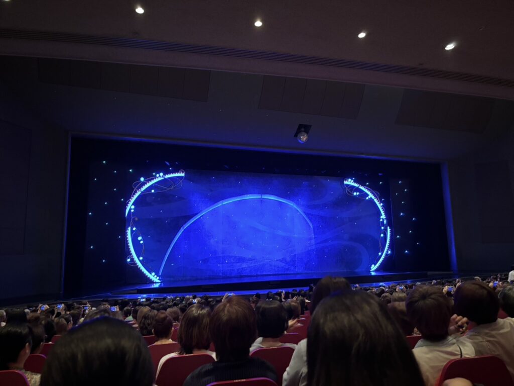 開演数分前に幕が上がり幻想的な雰囲気の舞台登場します。これを撮影するのも宝塚観劇の醍醐味です。