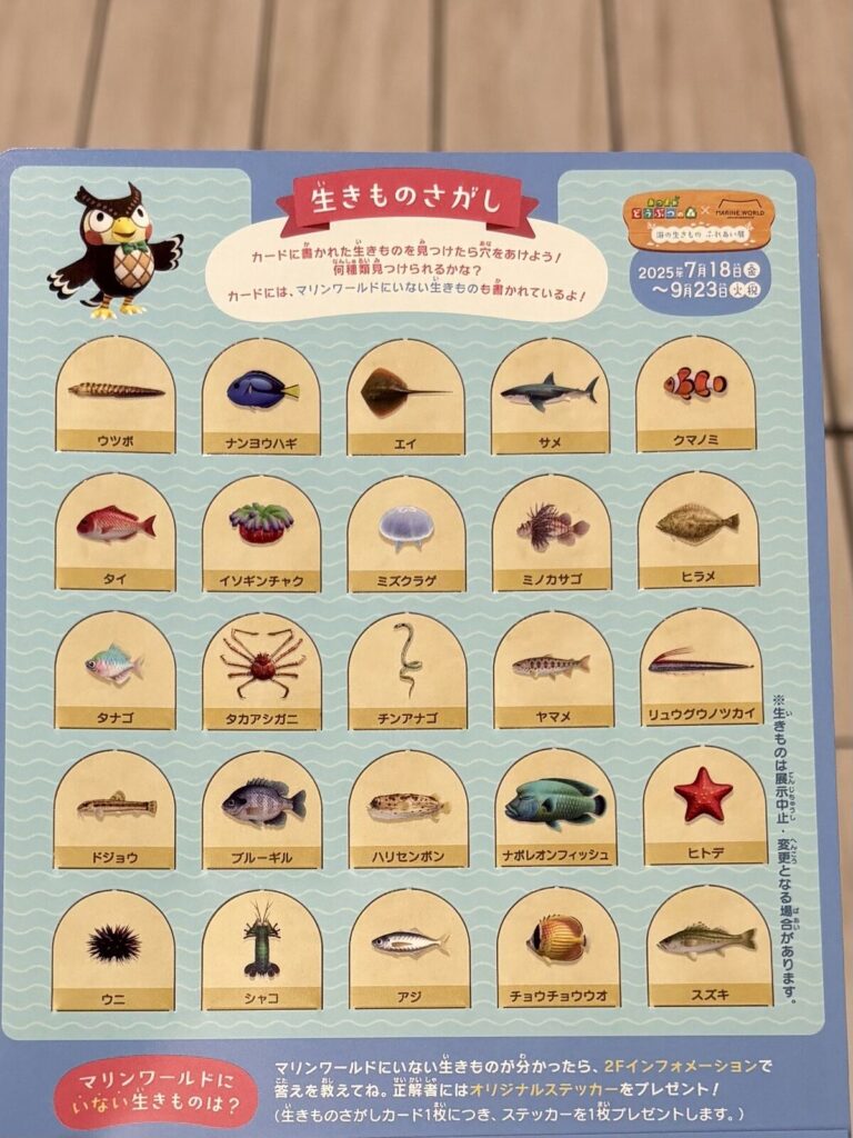 現在福岡市にある「マリンワールド海の中道」で2025年7月18日(金)から9月23日(火・祝)まで開催中の、ゲーム「あつまれ どうぶつの森」とのコラボイベント『海の生きもの ふれあい展』。