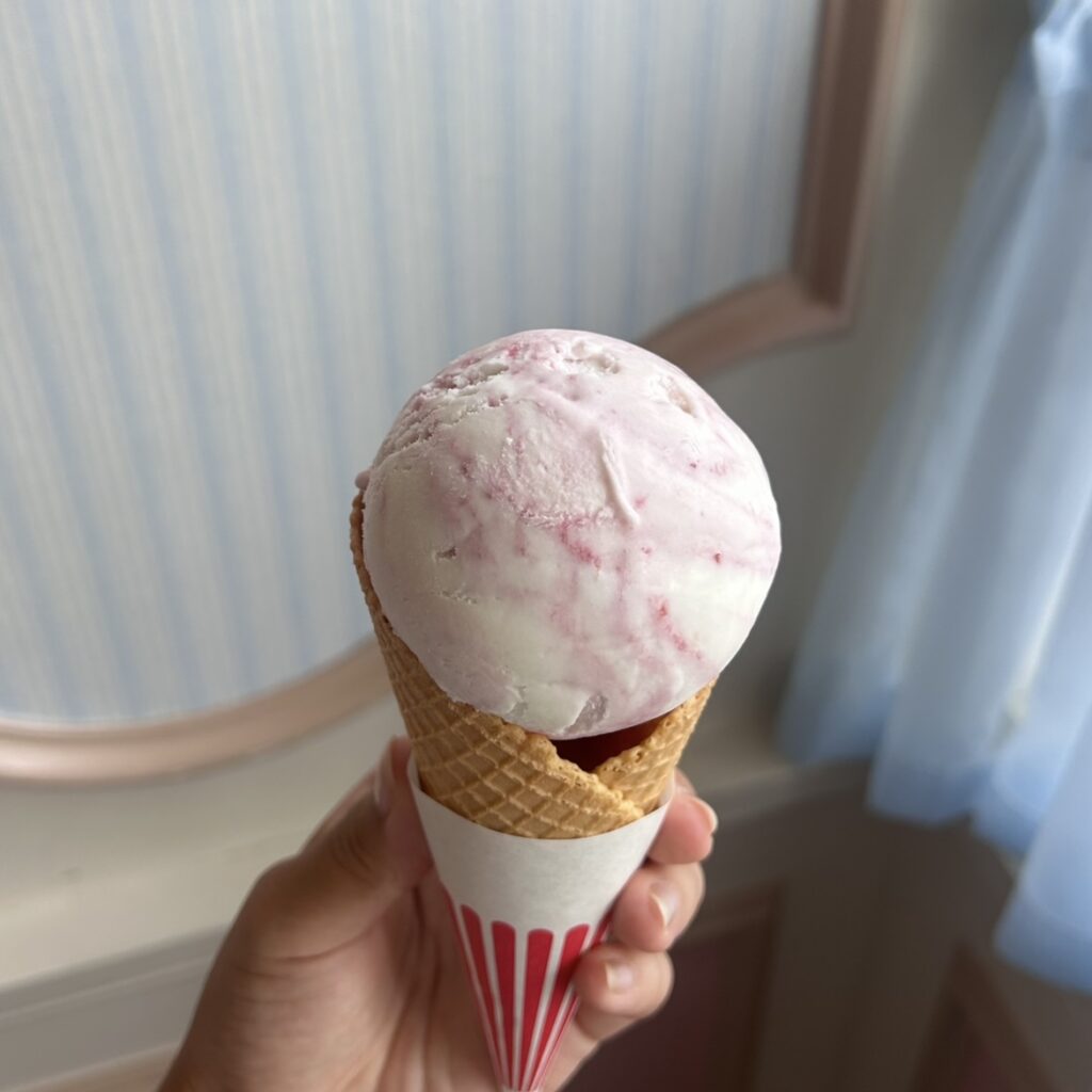 開園と同時に入園するよりも空いていてスムーズに入園できました!とても暑かったので、入園してすぐにワールドバザールにある「アイスクリームコーン」でストロベリーチーズアイスを食べました!!お店の内装も可愛くてアイスの味も最高です!