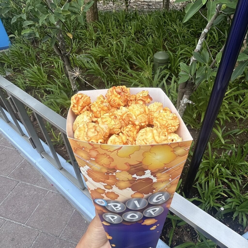 ずっと行ってみたかった「BIG POP」でチェダーチーズ味のポップコーンを購入しました!ワゴンに売っているポップコーンより一つ一つのポップコーンが大きくて、チーズの味がしっかりとついていてとても美味しかったです!またディズニーランドを訪れた際も絶対に食べます!!