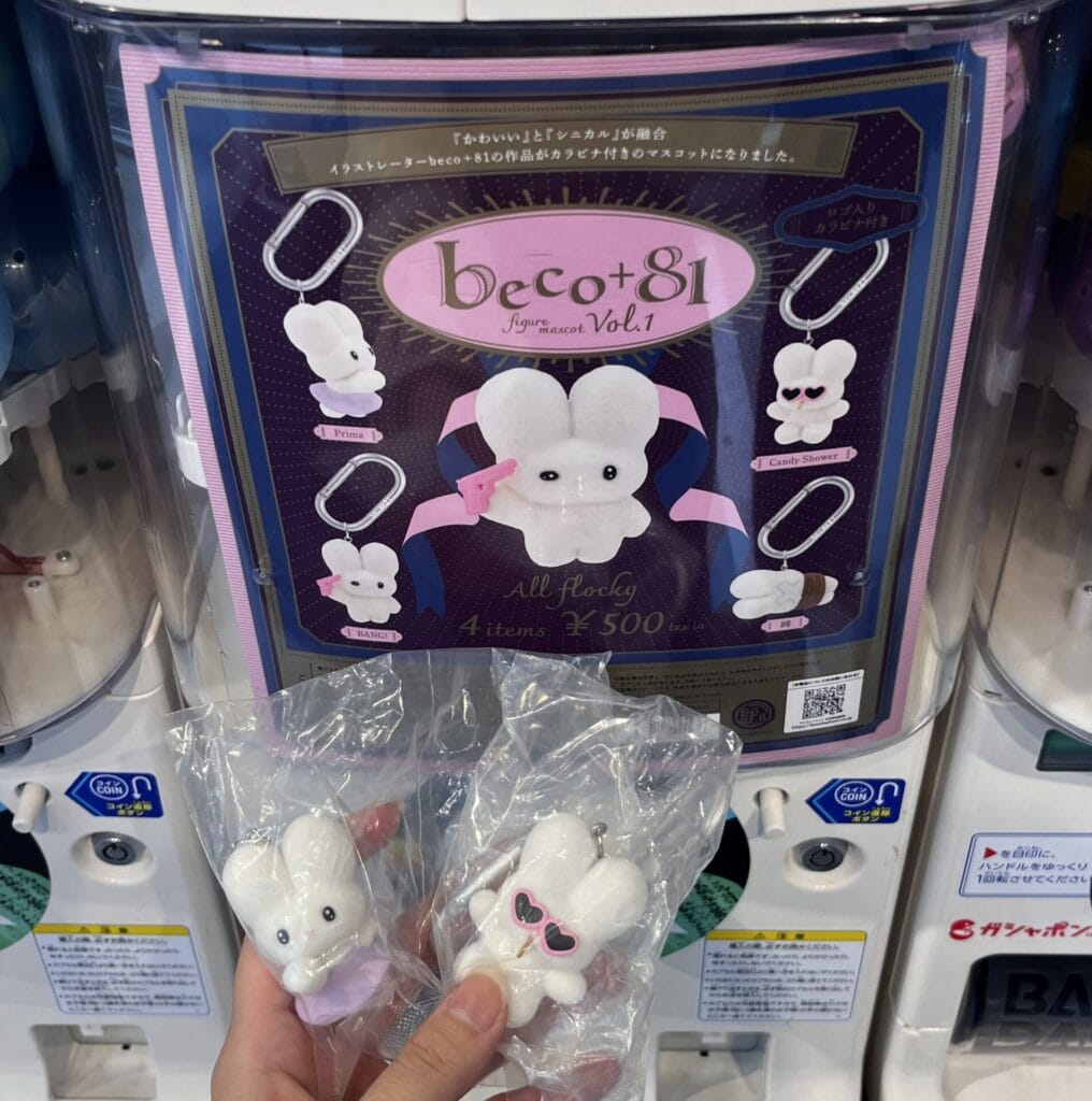 こちらは実際に私が探し回りやっと見つけたしりみみウサギのガチャガチャです。今は販売開始からしばらく経ってしまってるのでなかなかお目にかかることはありませんが、もし見つけたらすぐに回しましょう! というほど大人気です!!