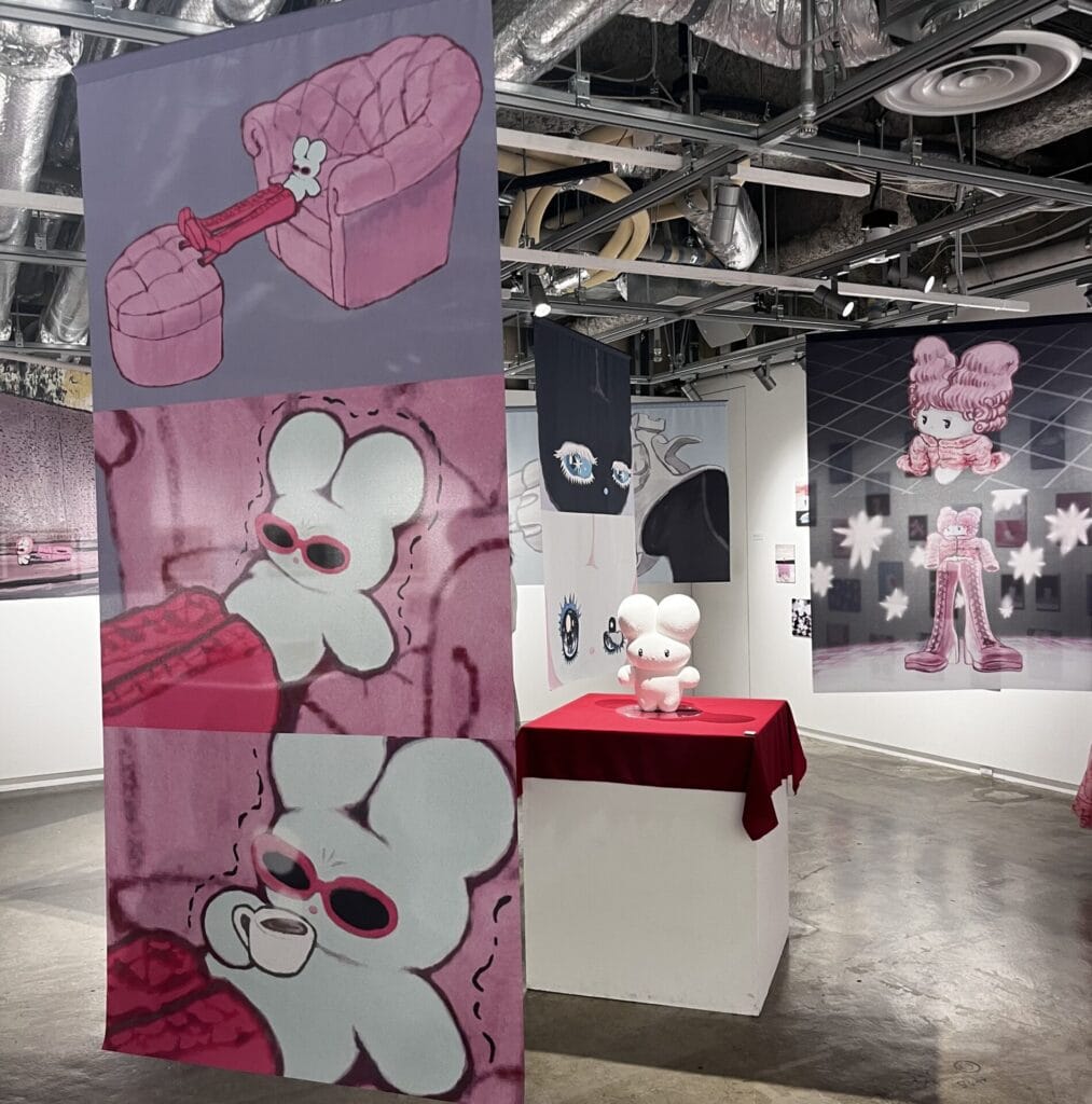このように展示ブースには大人気のイラストから今回の展示会用に描かれた新作まで、しりみみうさぎちゃんで溢れかえった可愛らしい空間となっています。