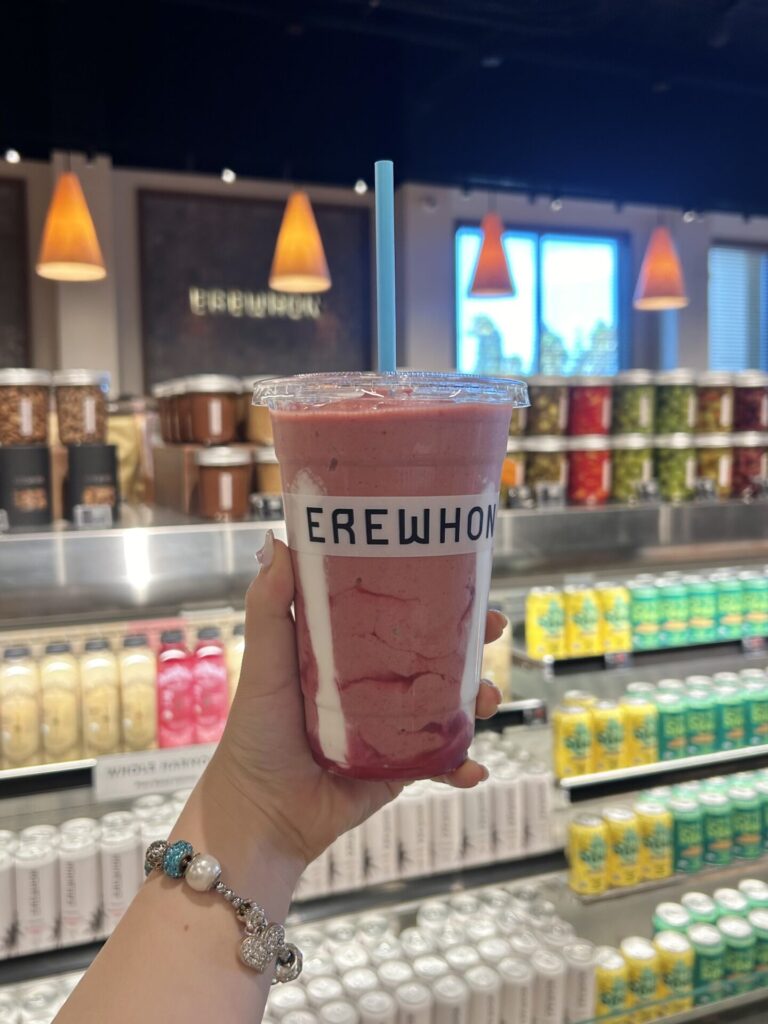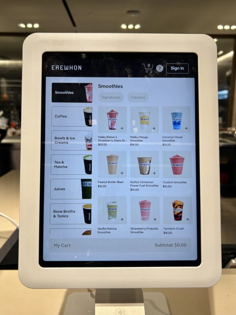 EREWHONはスーパーだけでなく、ドリンクやフードのテイクアウトも行っています。中でも爆発的な人気を誇るスムージーがJustin Bieberの奥様 “Hailey Bieber”とのコラボスムージーです!以前にもEREWHONは有名歌手のOlivia Rodrigo、Katy Perry、Travis Scottなどとコラボしています!