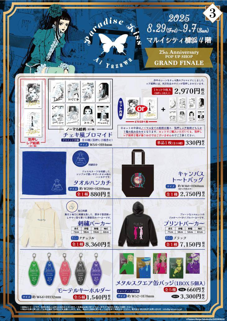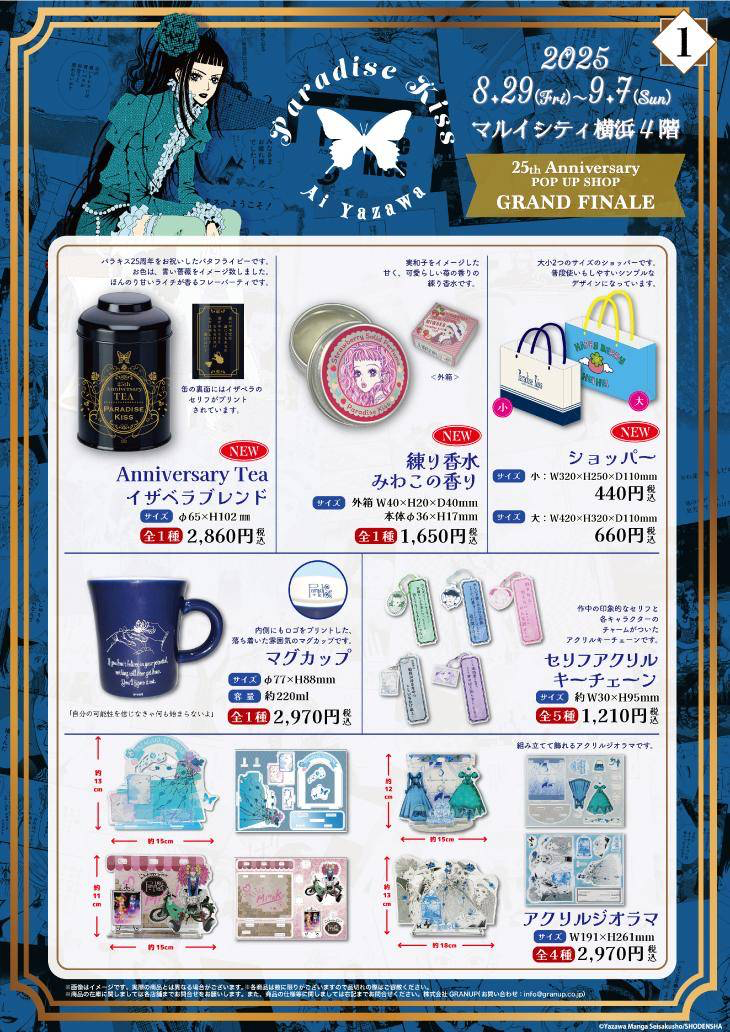 こんにちは~。漫画、「Paradise Kiss」の25thアニバーサリーポップアップがマルイシティ横浜で2025.8.29~2025.9.7まで開催されていました!駆け込んできたので、今回は、その様子をまとめて見ました。
