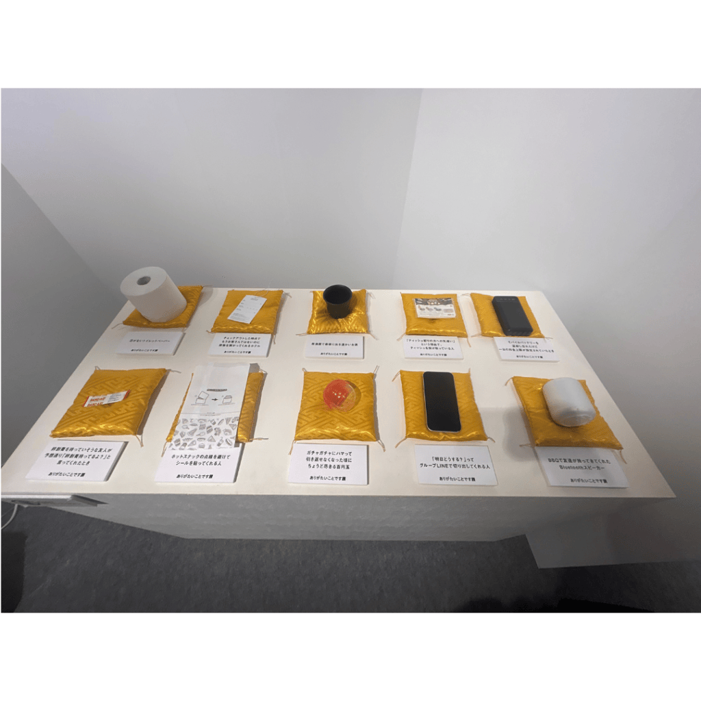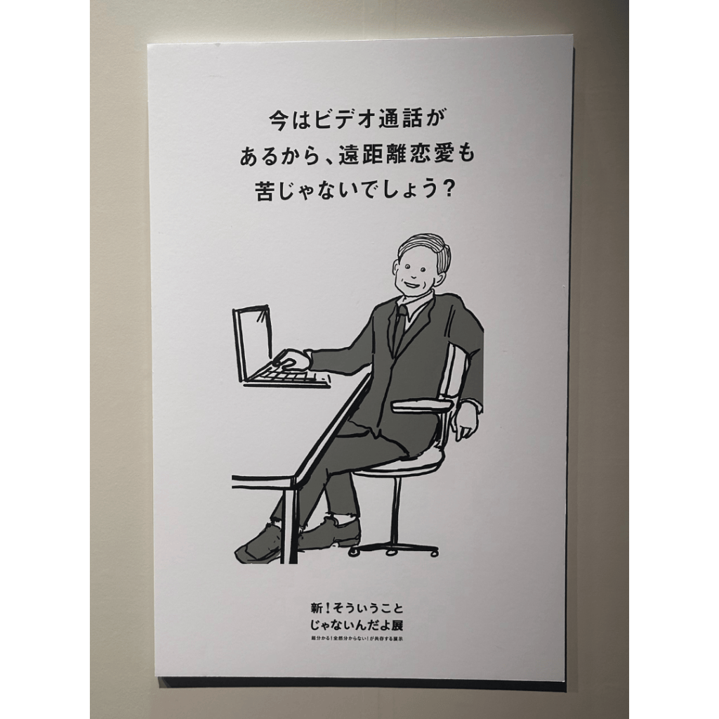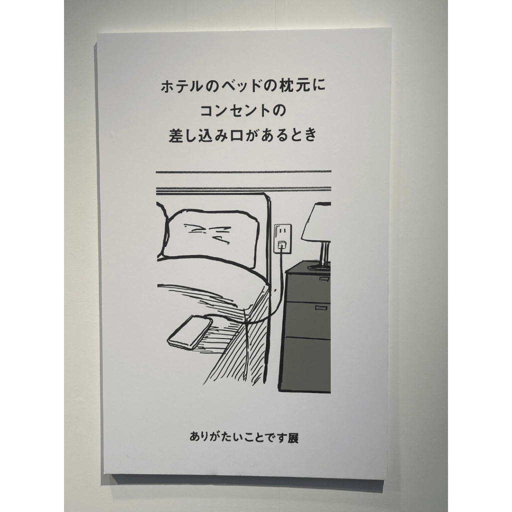 この展示会は、二つのテーマから成っていて、「そういうことじゃないんだよ」と思わず言いたくなるようなモヤっとするシチュエーションと、日常の中でちょっとしたことだけど「ありがたい」と感じるようなシチュエーションが紹介されています。