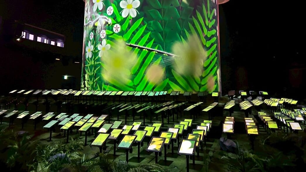 実際の花と透明マイクロLEDディスプレイを組み合わせることで、バーチャルとリアルが織りなす視覚効果を体験することができます。60インチ透明マイクロLEDディスプレイ(AUO)モジュールをつなげることで、実際のランの花の上でバーチャルの蝶が飛び交う様子を実現します。