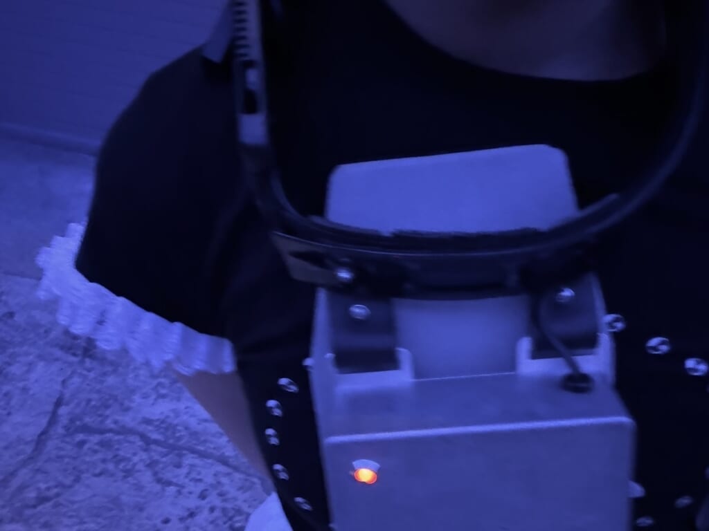 そして先述した通り、本アトラクションの大きな特徴の1つが「時間内に謎解きをクリアできないと装着した首輪から実際に電流が流れる」というルール。こちらの電流は健康に害のない範囲ではあるものの、思わず悲鳴が出るほどの痛みが首に走ります…。首輪からの電流&時間制限があることで極限状態のスリルが体感できました。