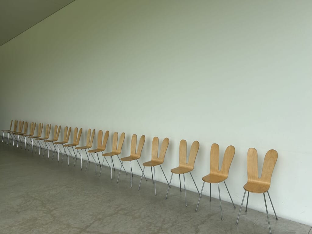 こちらは美術館内にあるSNSで大流行中の椅子SANNAデザインの「ラビットチェア」です! 椅子に座って手でうさぎの耳のようにポーズを撮ったり…インスタ映えする可愛い写真を狙ってみてください!