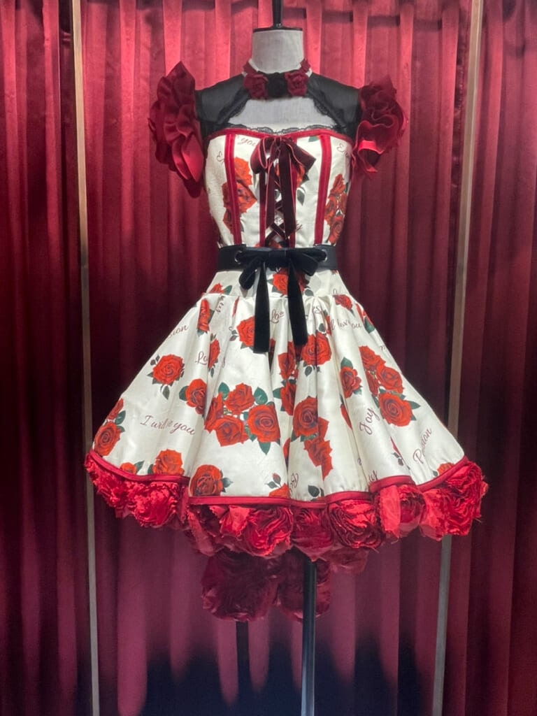 薔薇が全身に描かれ、上品で華やかな印象の衣装です。