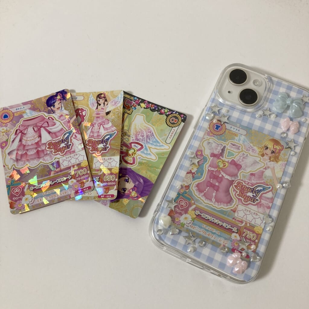 今回は、私たちが小学生の頃にハマりまくった「アイカツ!」のカードをスマホケースに挟んでスマホケースをとびきり可愛く、懐かしくしていきます♪