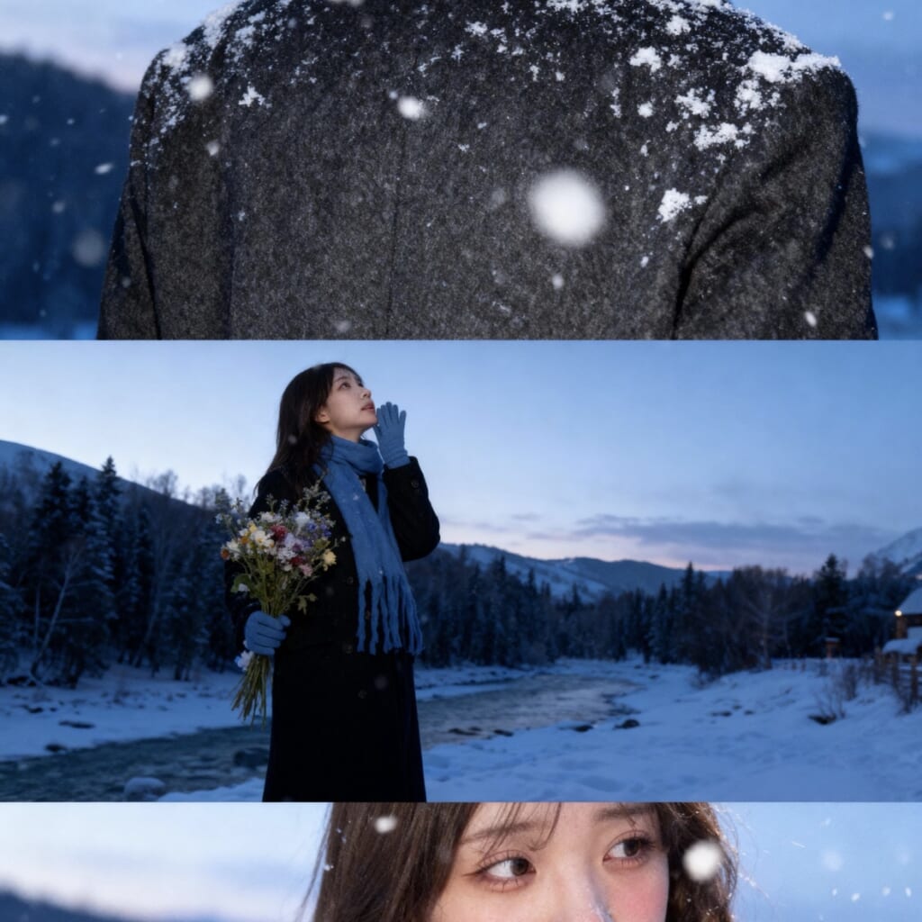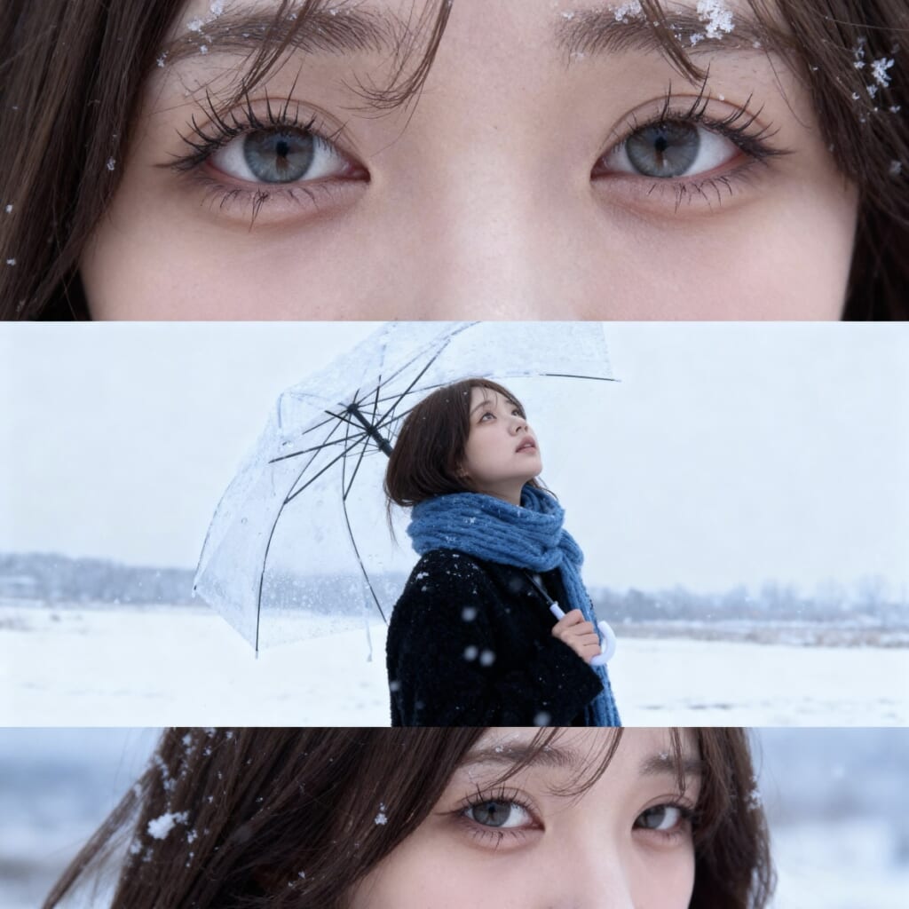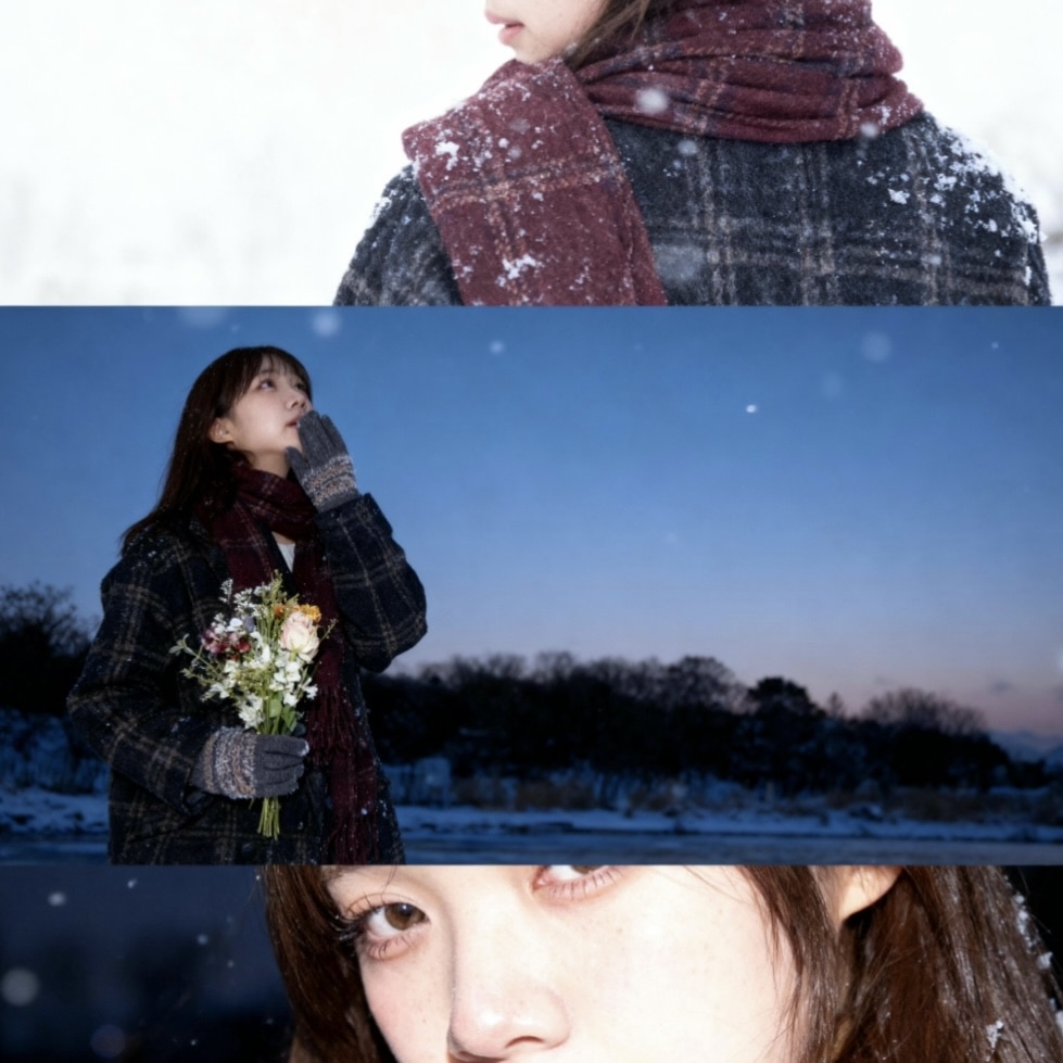 左側から、雪夜、ポートレート2コマ、雪景色3コマの加工です✊🏻