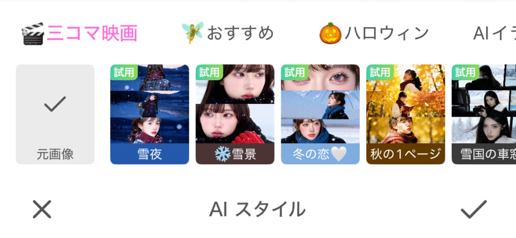 自分のやりたい加工が選べたら、あとは反映させたい人物の写真を選ぶだけで完了です!👍🏻✨️