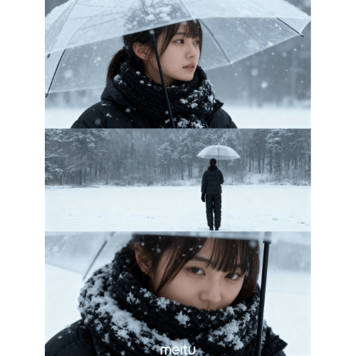 AI雪加工は、アプリが自動で人物の顔や雰囲気を認識し、“透明感・儚さ” を演出してくれる加工のことです。