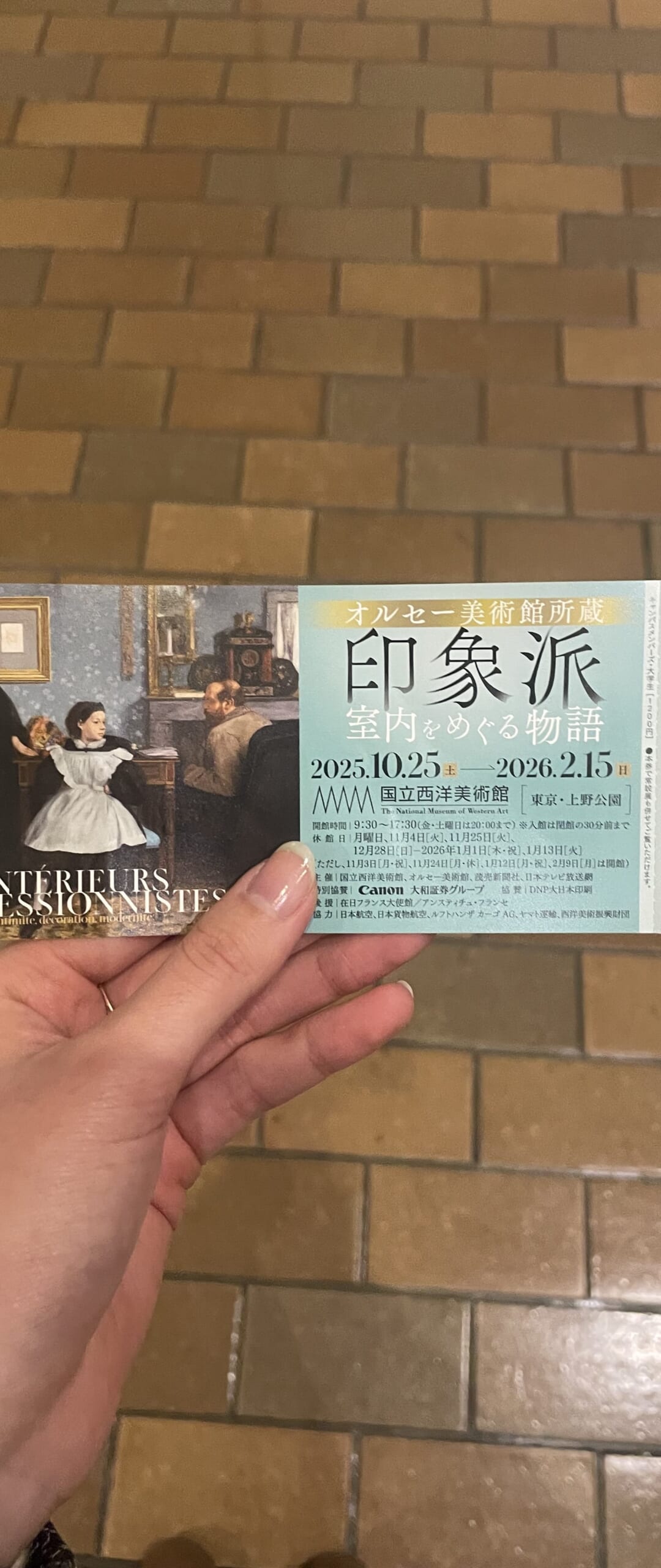 私の学校は国立美術館キャンパスメンバーズ加盟校に含まれていたので、1200円で購入。通常の大人用のチケット(QRコード)とは異なり、紙のチケットをもらえたのでうれしかったです。