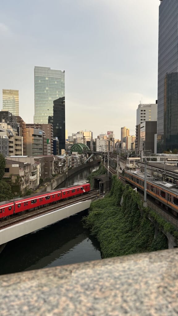 総武線、中央線、丸の内線が立体交差していて、タイミングが合えば3つを同時に見ることができます!