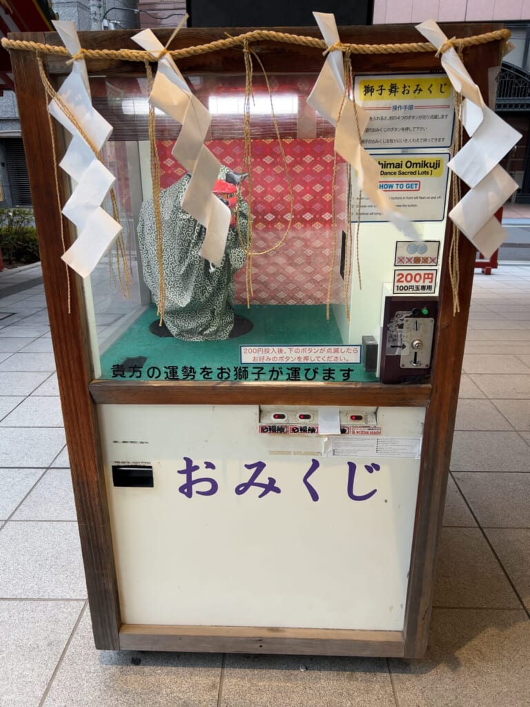おみくじは、(ちょっと見えにくいですが…)この獅子舞が動いて、おみくじをくわえて出口に落としてくれる感じでした!