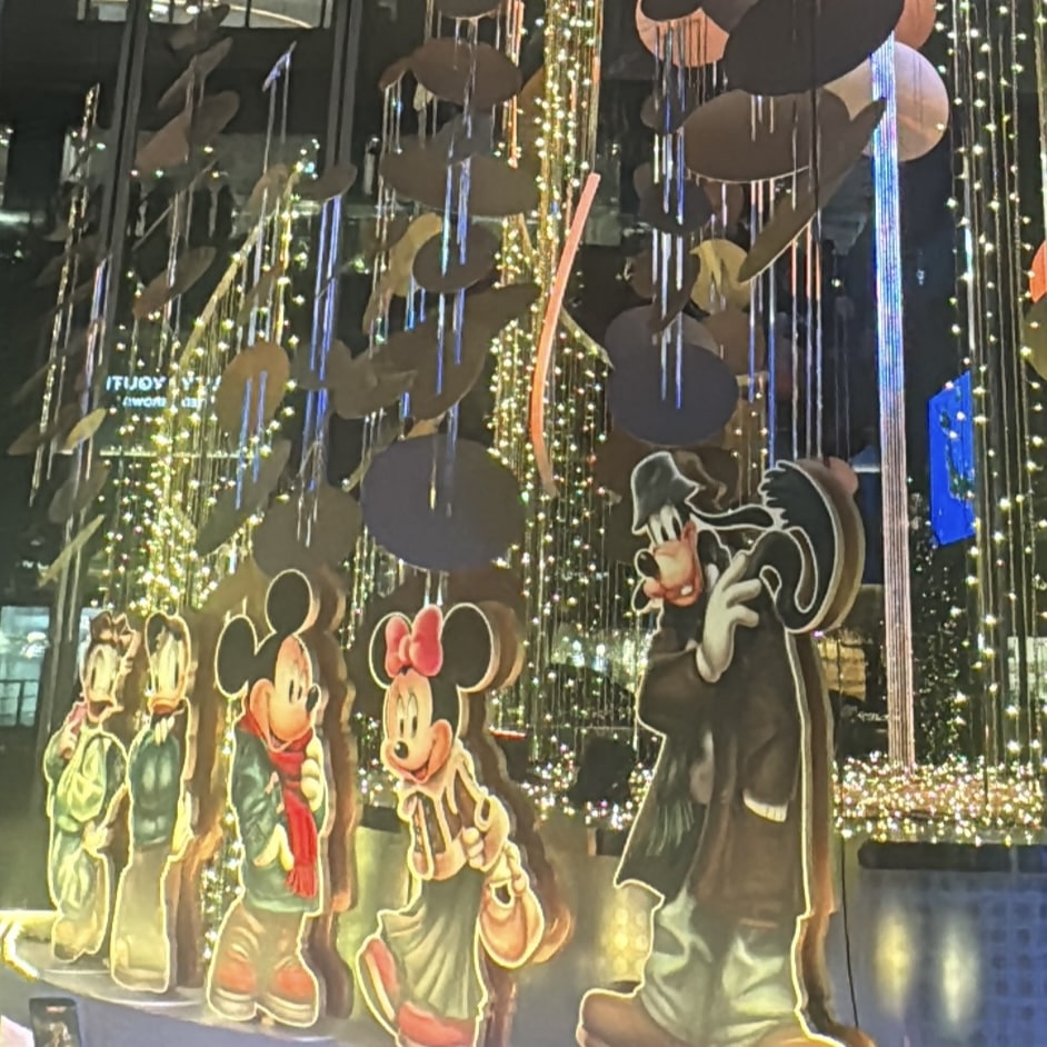 丸ビル1階マルキューブにある、Celebration Tree <Micky & Friends> では、各日17時から21時の15分毎に特別演出が実施されています。
