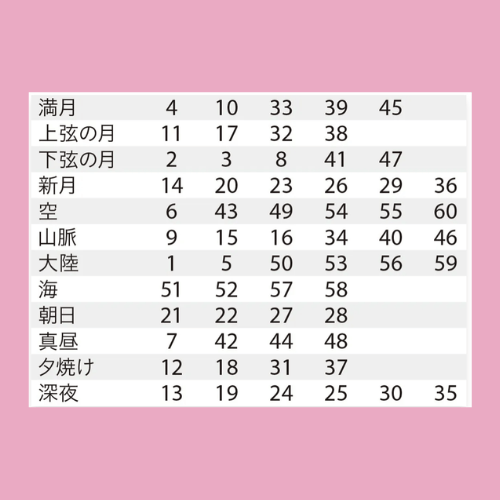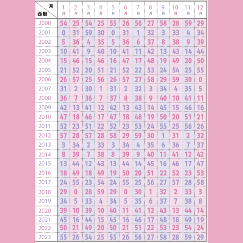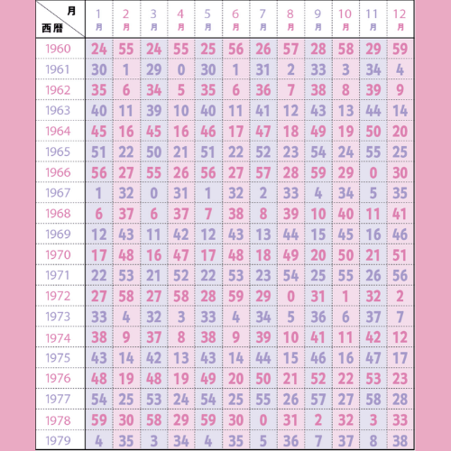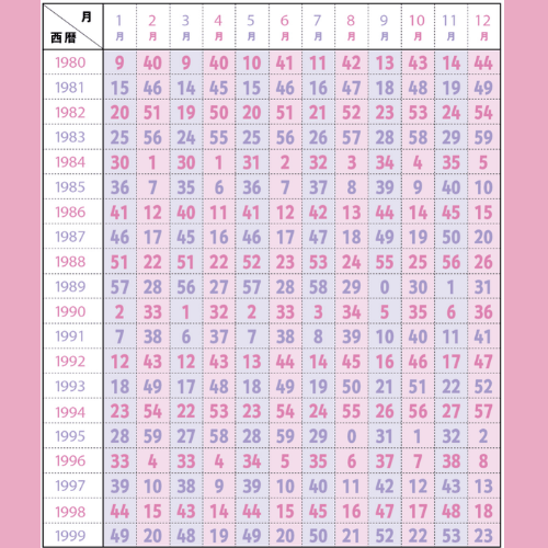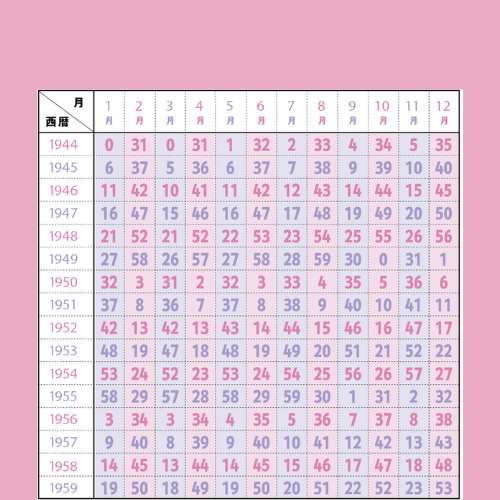 下の表から、自分の生年月が交わる数字を見つけてください!