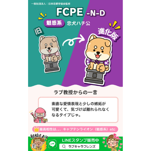 前回の「Love Type 16」で忠犬ハチ公だった私は、魅惑系忠犬ハチ公(FCPE-N-D)に進化しました!