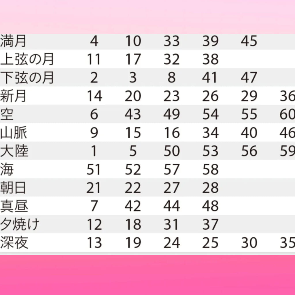 - STEP3 数字を下の表から探す。表にある天星があなたのタイプ!