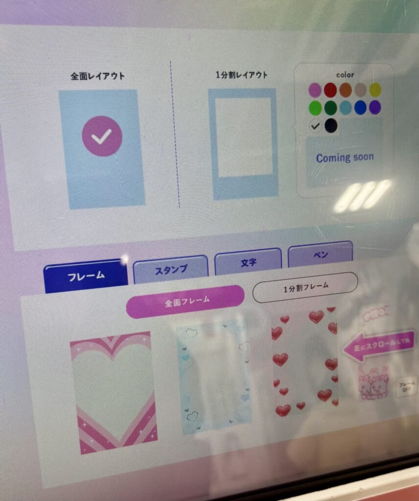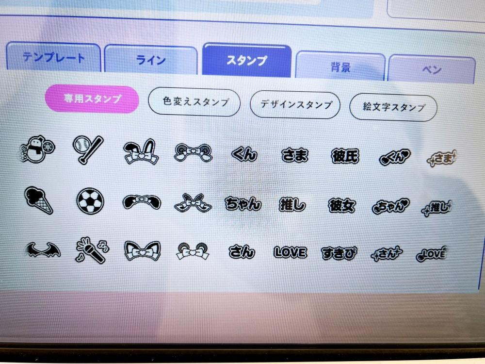 写真を選んだらプリクラと同じくデコレーションで仕上げていきます。