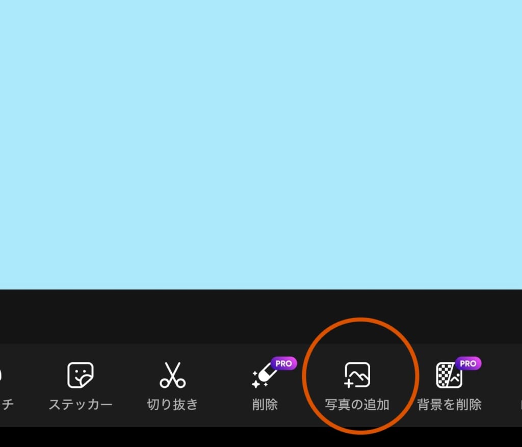⑥『写真の追加』をから、加工したい画像を選択