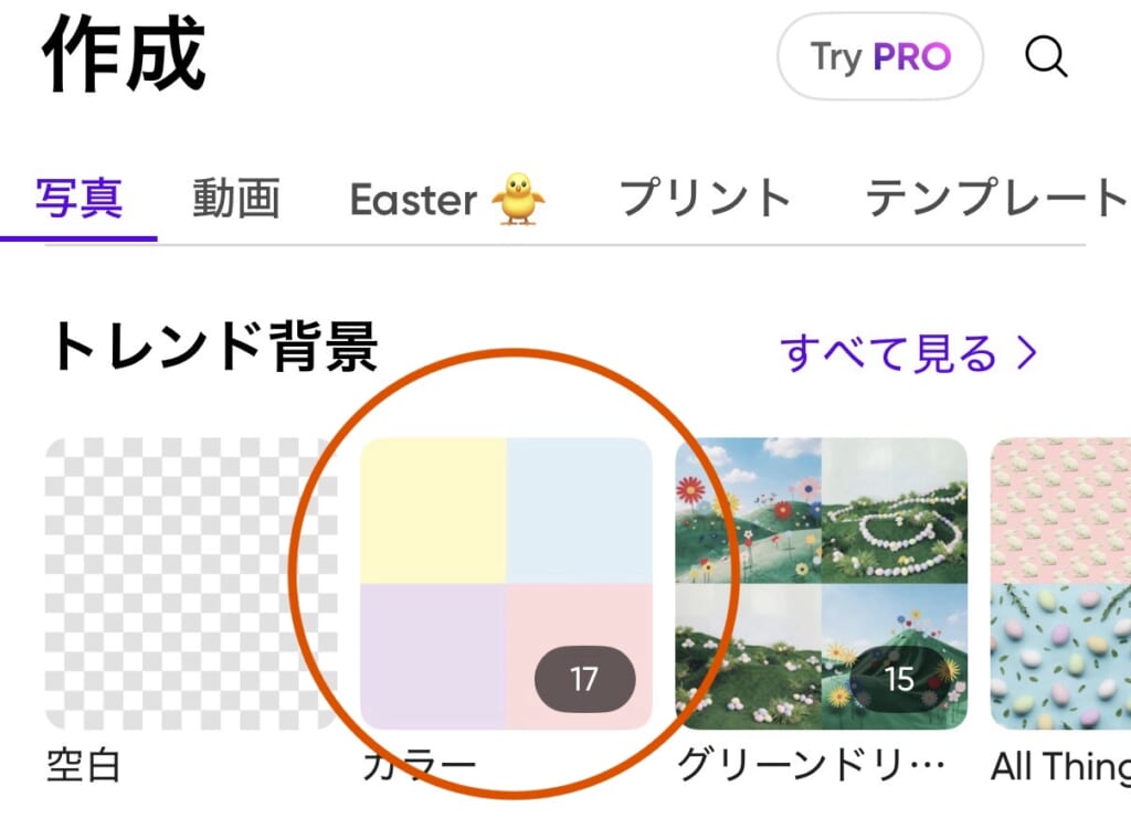 ②背景から『カラー』を選択