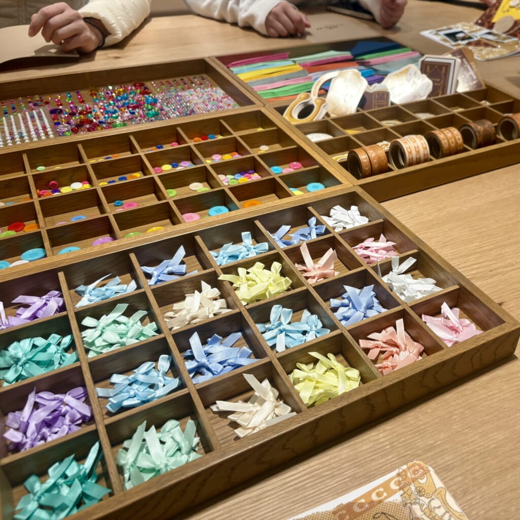 ステッカー以外にもデコレーション用にリボンやボタンなどのさまざまなパーツが用意されていてテンションが上がりました!