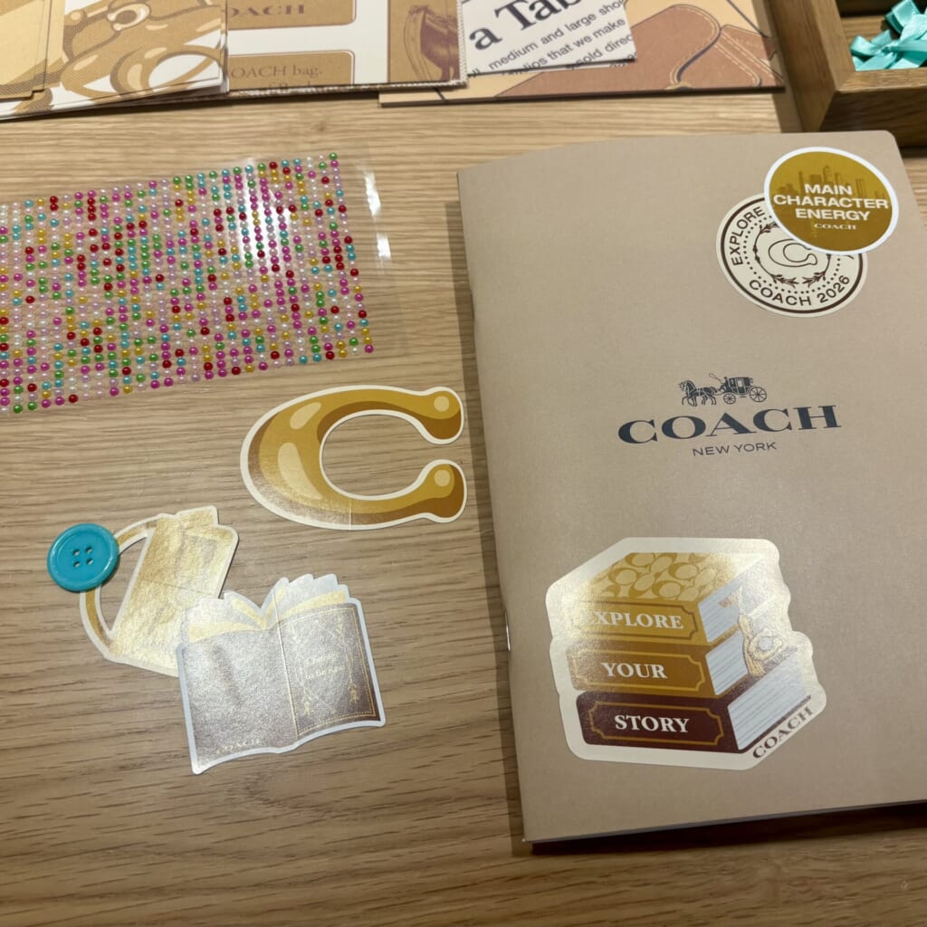 コーチオリジナルのノートを自分好みにカスタマイズしていきます! 用意されていたステッカーは全てコーチ仕様のレアグッズで、どれもおしゃれで可愛かったです!