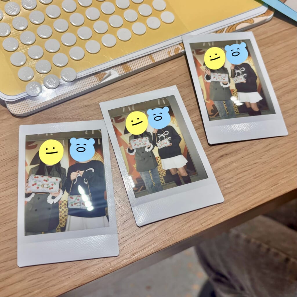 中でも1番テンションが上がったのはチェキです! 気になったチェリー柄のバッグを持ってエディターズの2ショットを撮ってもらいました! 思い出をその場で形に残せるのがとても良かったです!