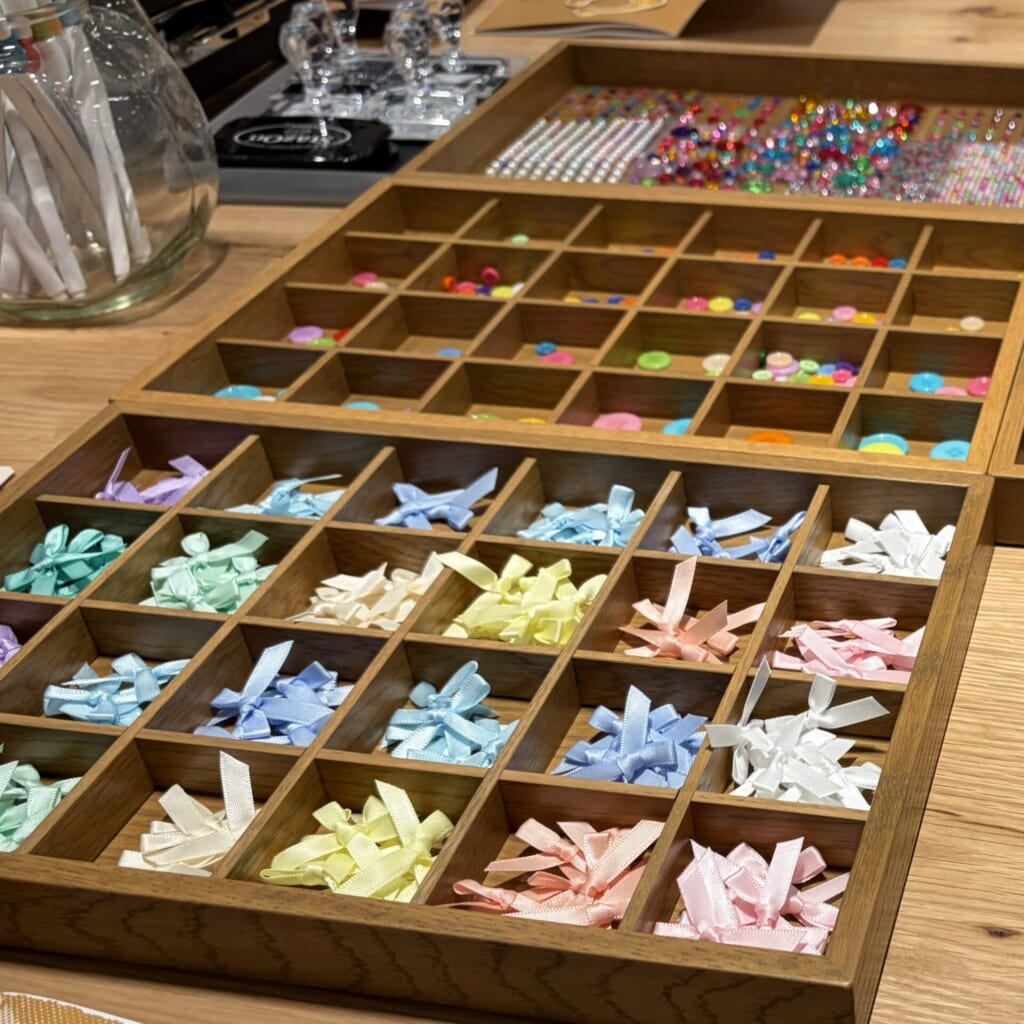 リボンやボタン、シールやマスキングテープなど、材料は盛りだくさん!!