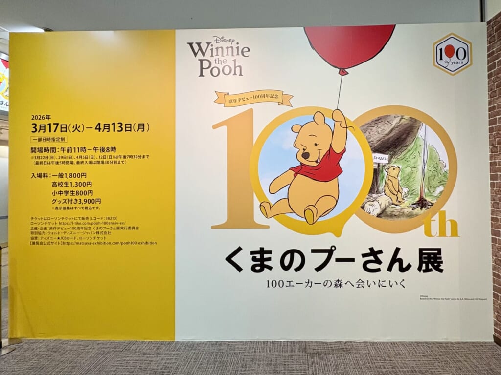 2026年に原作デビュー100周年を迎えたくまのプーさん! それを記念して松屋銀座でくまのプーさん展が行われています! 東京の次は大阪での開催が予定されています!