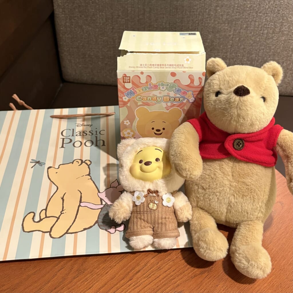 悩み抜いた末に選んだのがこちらの3つです! クラシックプーシリーズがとても気に入ったのでぬいぐるみとショッパーを購入したのと、前から気になっていたTOPTOYのプーさんを1つ購入しました! 家で早速飾りたいと思います!