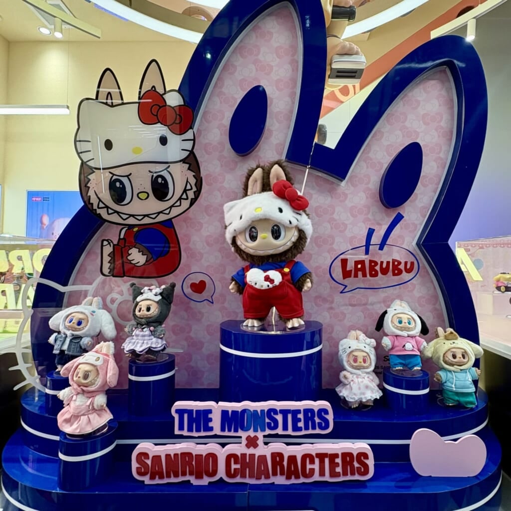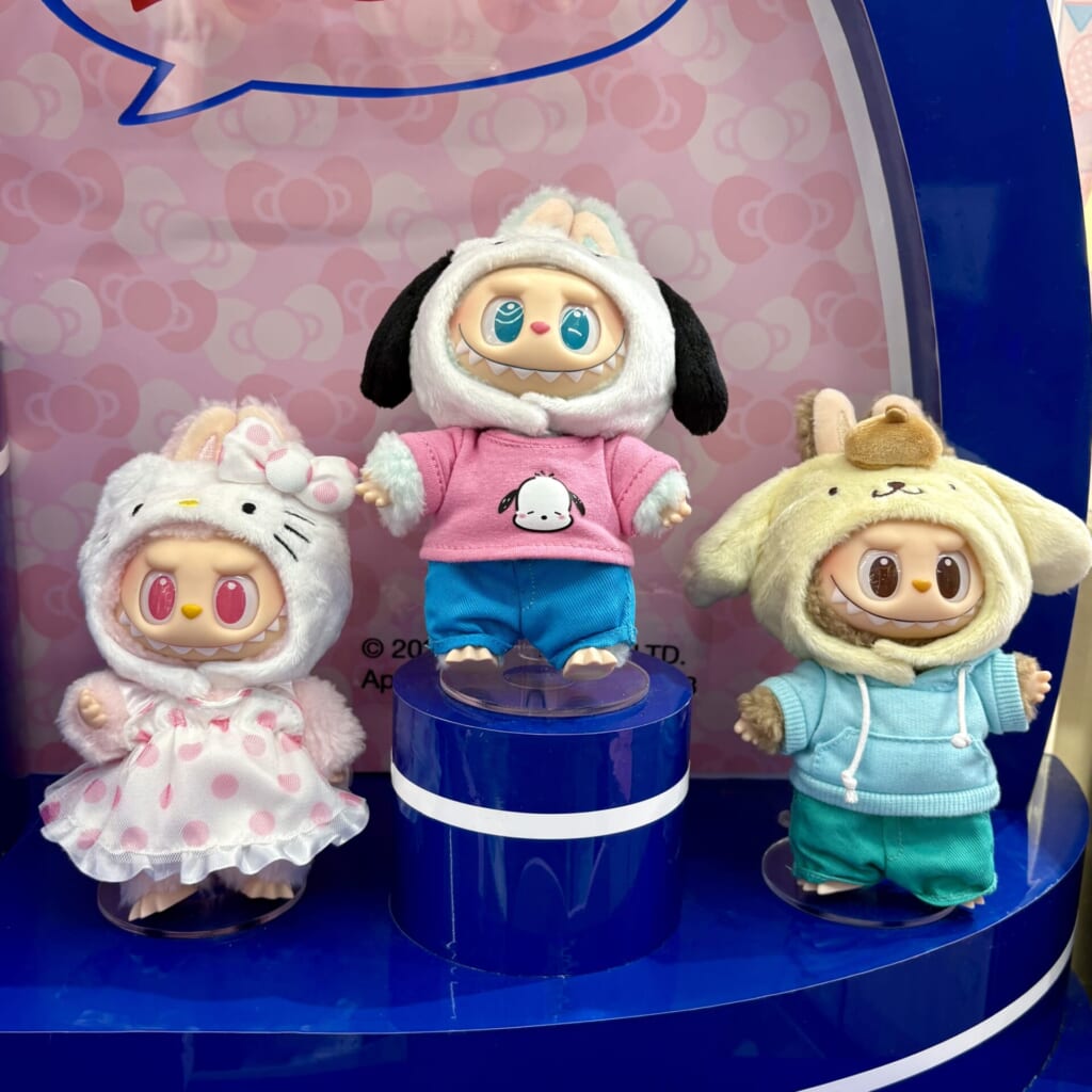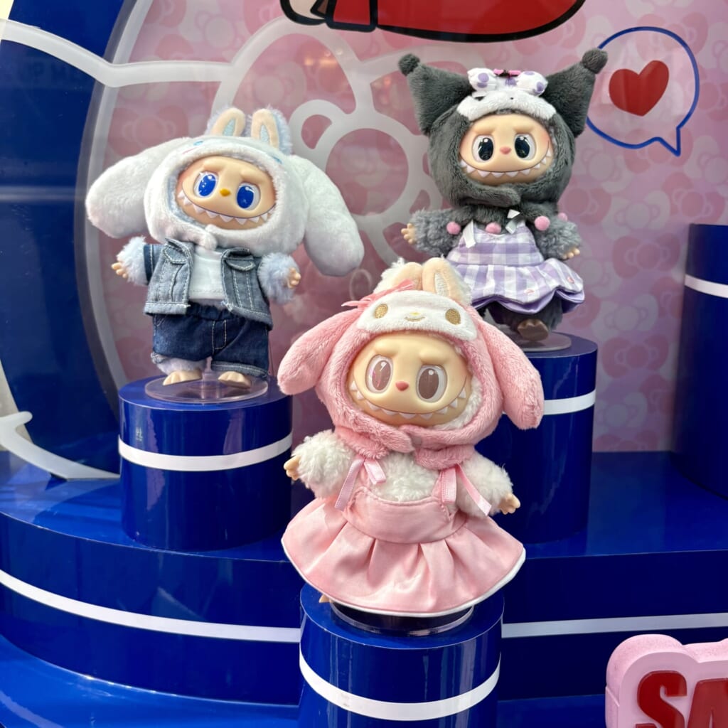 後日、POP MART原宿本店の近くに用事があったのでついでに寄ってみたところ、サンリオラブブが展示されていました! この日はすでに在庫はありませんでしたが、実物を並べて見ることができてよかったです! それぞれのキャラクターの特徴をよく捉えたデザインになっていて感動しました!