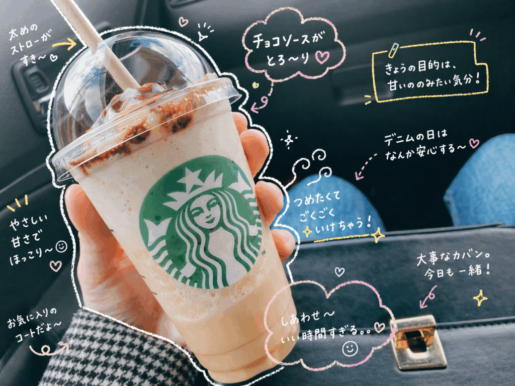 【装飾】 ・湯気、キラキラ、ハート、小さな顔文字などを多めに追加 ・やりすぎず「余白」を残す