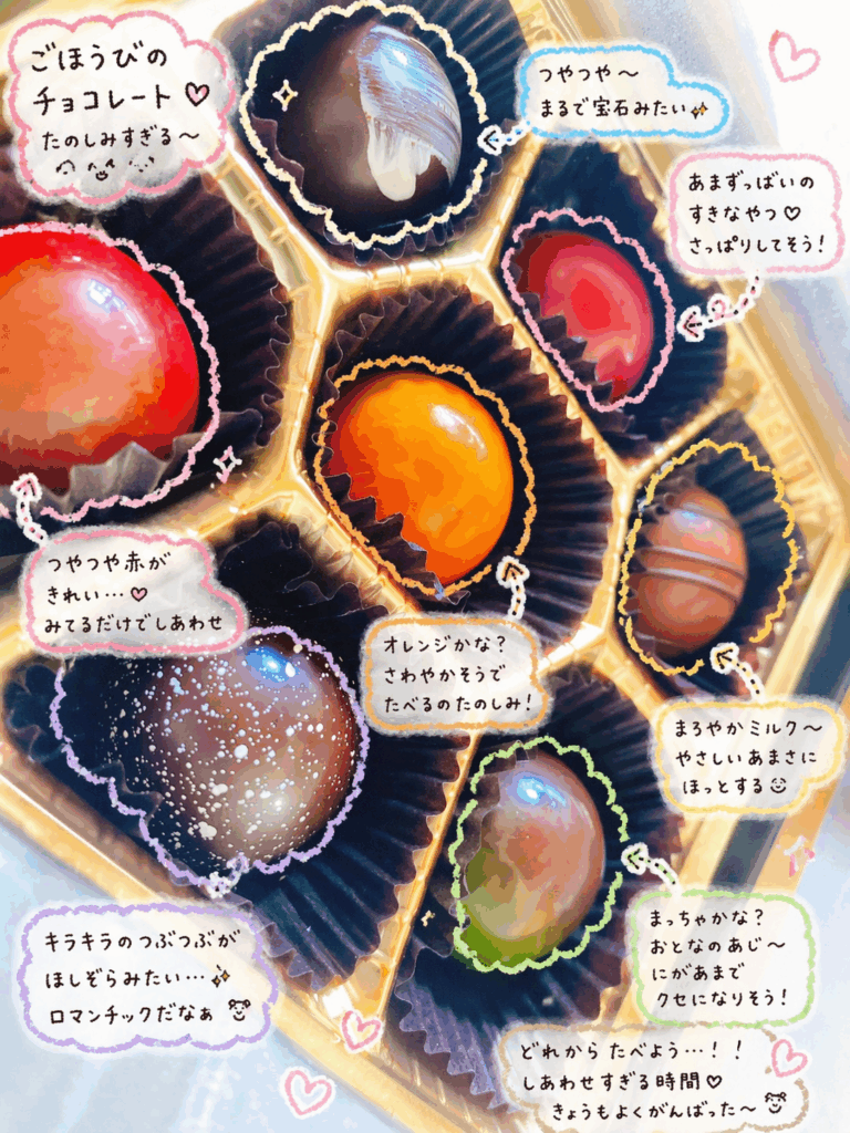特に、チョコ1粒ずつにコメントしている点が細かいなと感じました!!
