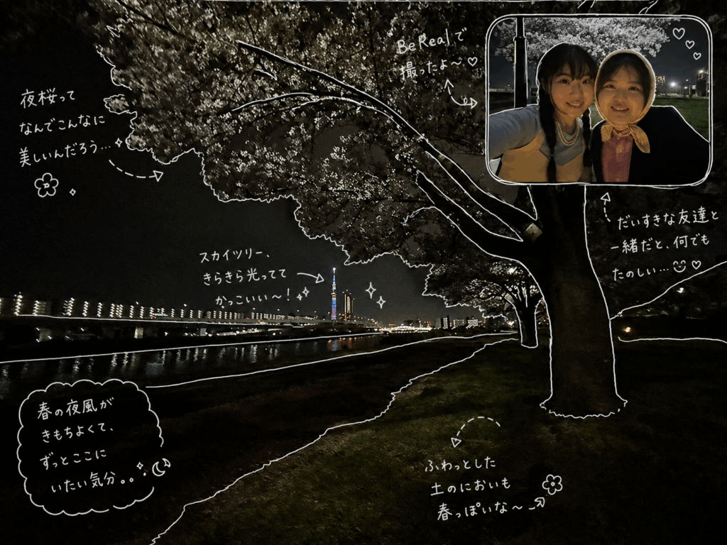 1つ目は、「BeRealで撮った写真を使うこと」です!📸そうすることによって、小さい写真の方にも手書きフレームが追加されて手書き感がアップします🌟流行×流行=間違いなし!のアイデアです🙂↕️