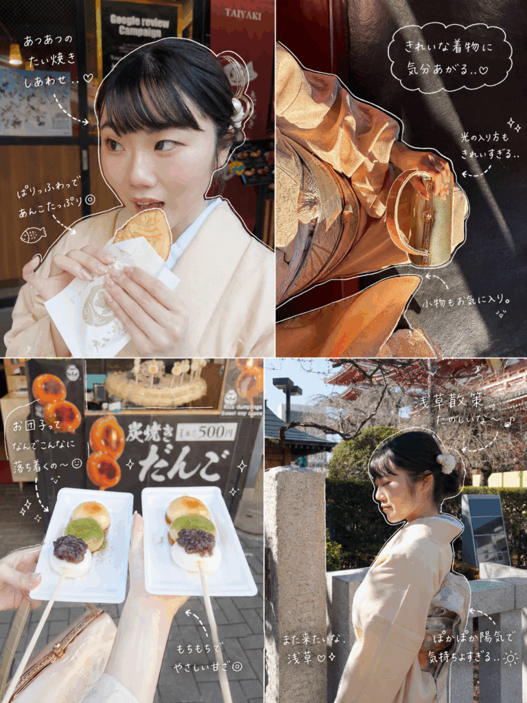 2つ目は、「たくさんの写真を使うこと」です!複数の写真をまとめて送ると、chat GPTが自動でレイアウトまで考えて送ってくれます🙌🏻メインとなる写真にまつわる数枚を合わせて送ると、まとまりがあってとっても可愛いです!♡