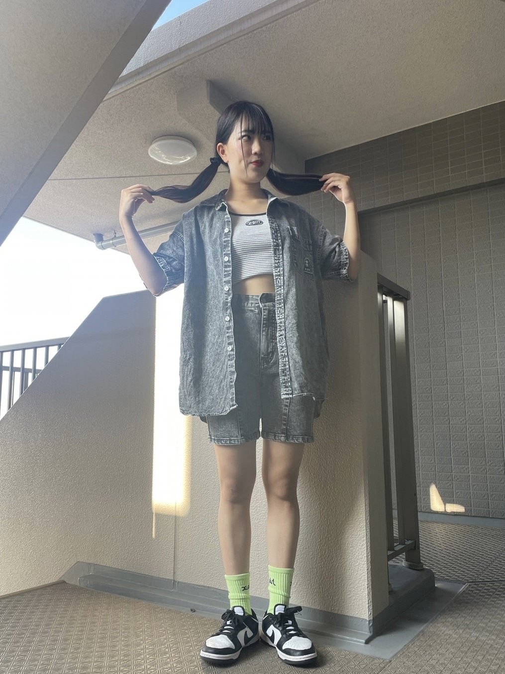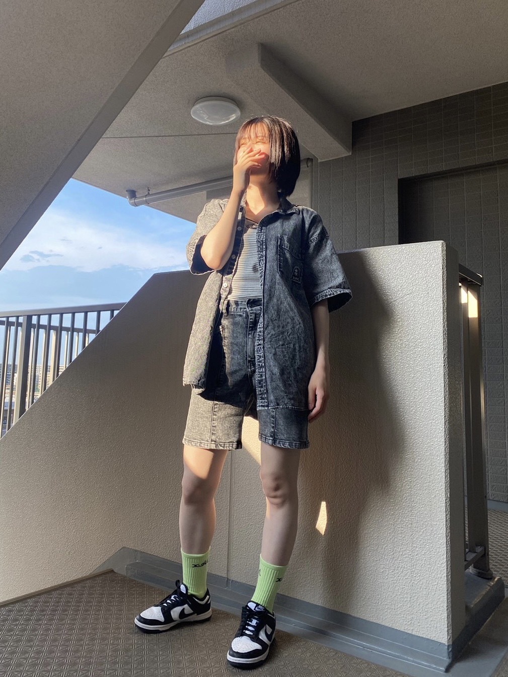 オーバーオール(SHEIN)・インナー(X-girl)・サンダル(不明)