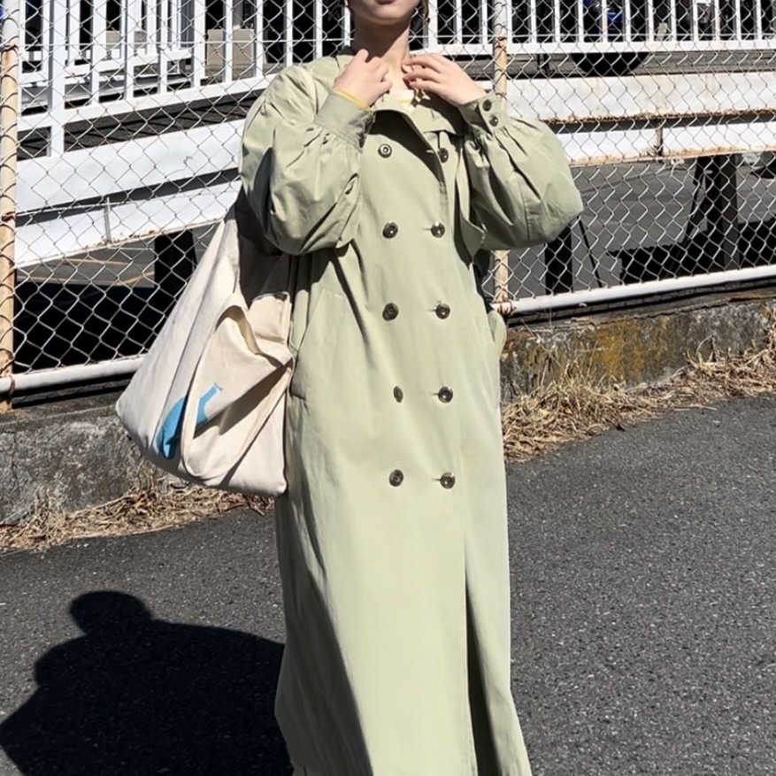 今っぽさをコーデに求めるなら、カラートレンチを選ぶのがオススメ。ボタンを全締めしてワンピースのように楽しんでもよし。ボタンを留めずに羽織って、トップスとのカラーの組み合わせを楽しんでもよし。