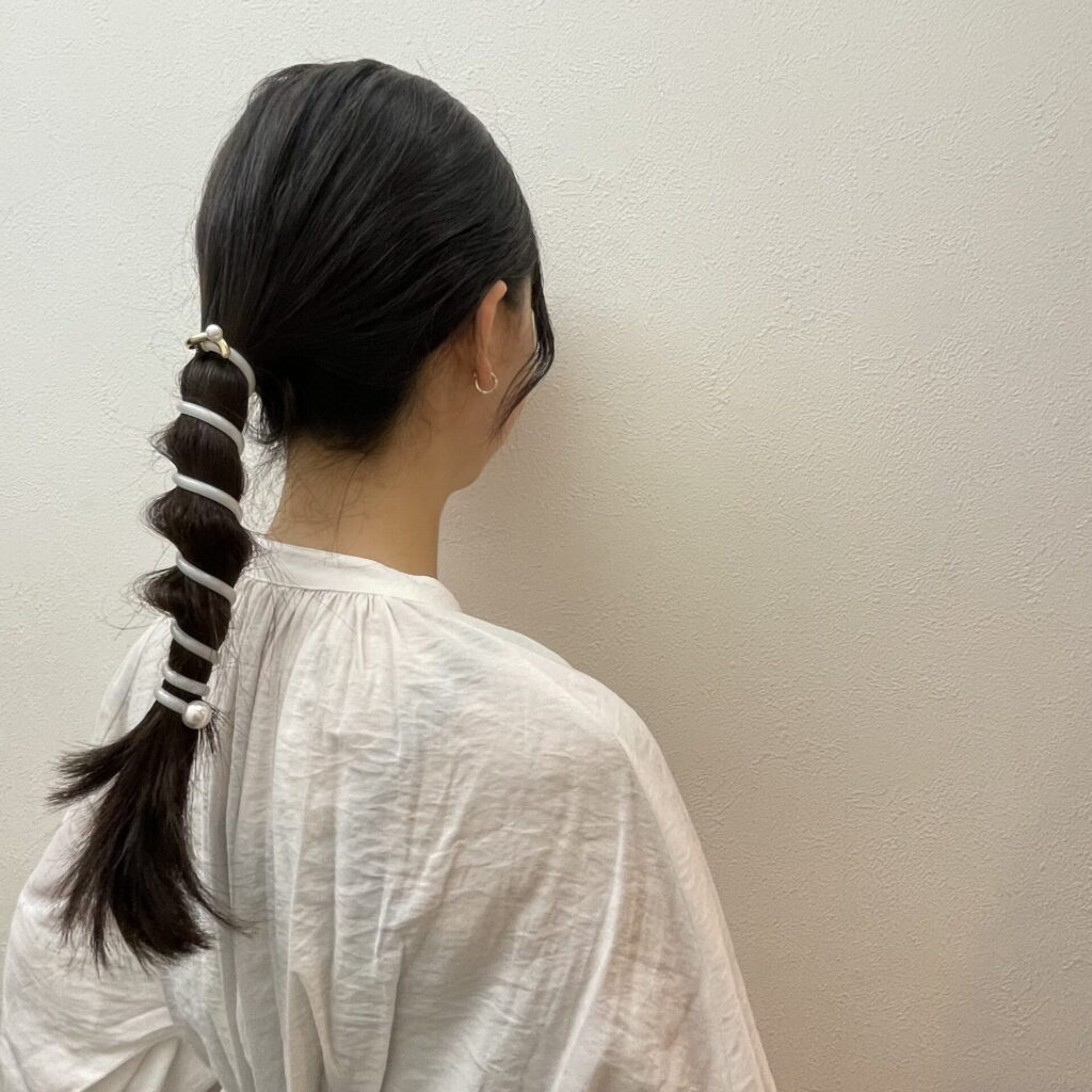 ヘアゴムの近くで巻いてもよし、全体に巻きつけるのも良いです!