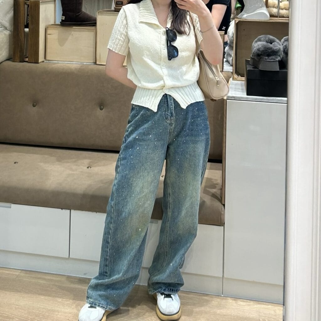 魚の市場に行ったため、動きやすいデニムを合わせました。
