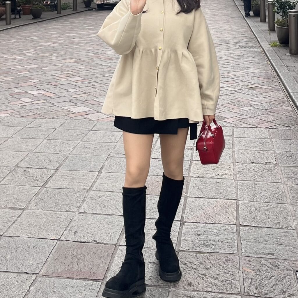 ✔ ロングブーツが縦のラインを強調するから、スタイルアップ効果あり✨